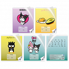 71611 Тетрадь Kuromi, формат А5, на скрепке, 18 листов, клетка с полями, внутренний блок офсет 60-65 г, 92% белизна, обложка мелованный картон + Уф-лак, 5 дизайнов в спайке