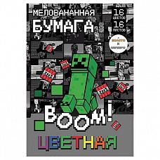 77123 Бумага цветная My Game, мелованная односторонняя, на скрепке, размер 205*290 мм, 16 листов, 16 цветов (14 цветов +золото+серебро)