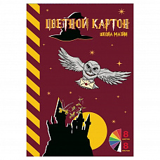 77120 Картон цветной Школа Магии, немелованнный, 8 листов, 8 цветов в папке
