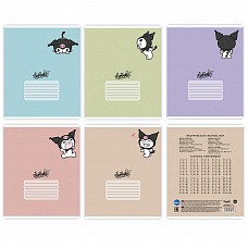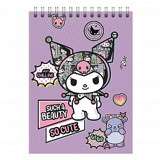 76979 Тетрадь Kuromi, формат А5, на скрепке, 18 листов, клетка с полями, внутренний блок офсет 60-65 г, 92% белизна, обложка мелованный картон + ВД-лак, 5 дизайнов в спайке