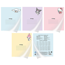 Новинка! 78422 Тетрадь Hello Kitty&friends, формат А5, на скрепке, 12 листов, клетка с полями, внутренний блок офсет 60-65 г/м2, 100% белизна, обложка 190г/м2, 5 дизайна в спайке, 25 шт. в спайке