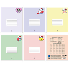 Новинка! 78423 Тетрадь Hello Kitty&friends, формат А5, на скрепке, 12 листов, линия с полями, внутренний блок офсет 60-65 г/м2, 100% белизна, обложка 190г/м2, 5 дизайна в спайке, 25 шт. в спайке