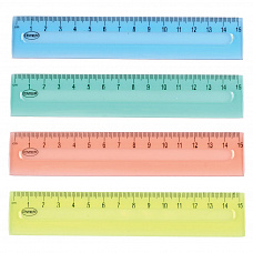 80725 Линейка 15 см. пластиковая прозрачная. Ассорти 4 цвета.