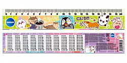 71076 Линейка пластиковая "Кавай" с таблицей умножения, 20 см в ПВХ-подвесе