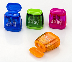 88835 Точилка пластиковая, с 2-мя лезвиями, с контейнером, цвета ассорти