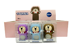 71118 Точилка пластиковая Мишка, 4 х 2,5 см в дисплее