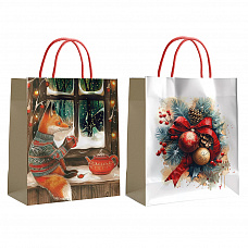 72715 Пакет крафт новогодний Каваи 26*32*12 см, 140г/м2