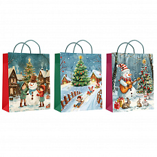 72680 Пакет ламинированный новогодний Снеговик 35*40*12 см, 210 гр/м2