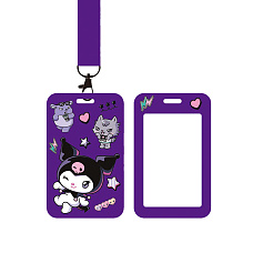 Новинка! 78471 Бейдж пластиковый Kuromi, 7х11 см, с фиолетовой лентой, металлический карабин