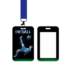 Новинка! 78376 Бейдж пластиковый Футбол, 7х11 см, с синей лентой, металлический карабин