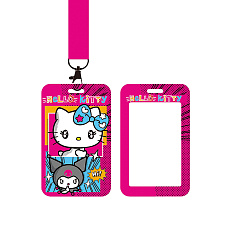 Новинка! 78378 Бейдж пластиковый Kuromi and friends, 7х11 см, с розовой лентой, металлический карабин