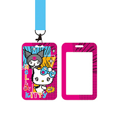 Новинка! 78472 Бейдж пластиковый Kuromi and friends, 7х11 см, с голубой лентой, металлический карабин