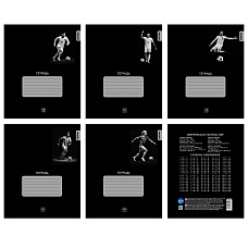 Новинка! 78419 Тетрадь Футбол, формат А5, на скрепке, 18 листов, клетка с полями, внутренний блок офсет 60-65 г, 100% белизна, обложка 190г/м2 + ВД-лак, 5 дизайнов в спайке