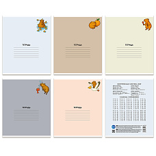 Новинка! 78320 Тетрадь Капибара, формат А5, на скрепке, 18 листов, линия с полями, внутренний блок офсет 60-65 г, 100% белизна, обложка 190г/м2 + ВД-лак, 5 дизайнов в спайке