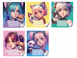 72045 Тетрадь Animal girls Аниме, формат А5, 18 листов с полями, клетка, на скрепке, внутренний блок офсет 60-65 г, 92% белизна, обложка мелованный картон+ВД лак, 5 дизайнов в спайке, 25 шт. в спайке