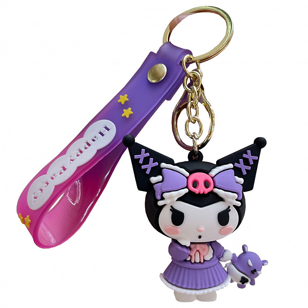 Брелок Centrum "Kuromi" станет отличным аксессуаром для ключей или креативным дополнением рюкзака или сумки. Изделие выполнено из ПВХ - материала. Металлическая основа состоит из кольца двойной крутки и короткого отрезка неразъемной цепочки. Имеется силиконовый ремешок-петля с карабином для подвеса. Размер - 6 см.