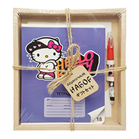 74547 Набор скетчбук Hello Kitty серая клетка, А5, 60 л+Ручка шариковая автомат прорез в подар упак
