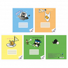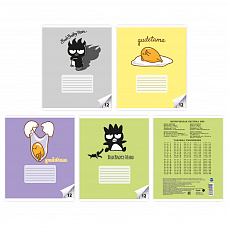 74915 Тетрадь BadMaru+Gudetama в дополнительной ПВХ обложке, формат А5, 12 листов, на скрепке, линейка, обложка 150 г/м2, блок котлас 60г/м2, белизна 100%, микс в спайке 4 вида по 5 шт