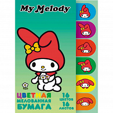 71932 Бумага цветная My Melody, мелованная односторонняя, на скрепке, размер 205*290 мм, 16 листов, 16 цветов (14 цветов +золото+серебро)