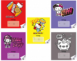 74559 Тетрадь Hello Kitty, формат А5, на скрепке, 18 листов, линейка с полями, внутренний блок офсет 60-65 г, 92% белизна, обложка мелованный картон + ВД-лак, 5 дизайнов в спайке