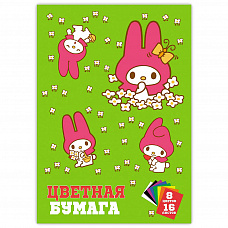71579 Бумага цветная My Melody, немелованная (газетка) односторонняя на скрепке 16 листов, 8 цветов