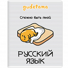 71604 Тетрадь предметная Русский язык "Gudetama", формат А5, линейка, 48 листов, на скрепке, внутренний блок офсет 60-65 г, 92% белизна, обложка софт-тач + выборочный лак, скругленные углы, 1 дизайн, в спайке 10 шт