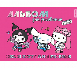 76799 Альбом для рисования Hello Kitty&friends, А4, 32 листа, на скрепке, мелованная обложка 235 гр/м2