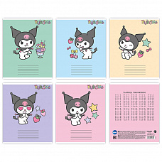 71611 Тетрадь Kuromi, формат А5, на скрепке, 18 листов, клетка с полями, внутренний блок офсет 60-65 г, 92% белизна, обложка мелованный картон + Уф-лак, 5 дизайнов в спайке