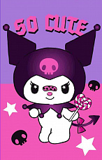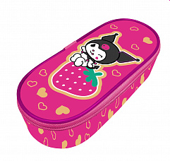 74341 Пенал корпусный овальный Kuromi, внутри откидная планка,размер 225*90*50 мм, полиэстер 210 ден