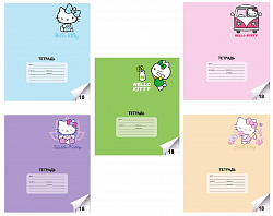 74541 Тетрадь Hello Kitty, формат А5, на скрепке, 18 листов, линейка с полями, внутренний блок офсет 60-65 г, 92% белизна, обложка мелованный картон + ВД-лак, 5 дизайнов в спайке