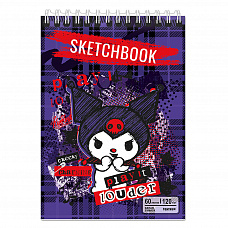 74009 Скетчбук Куроми фиолетовая клетка, формат А5, 60 листов, переплет гребень, расположение верхнее, офсет 120 г/м2, 100% белизны, обложка мелованный картон, размер 201х147