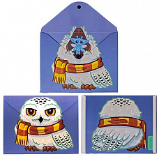 74418 Папка-конверт на кнопке А5, пластик, Сова, 180 мкм, двусторонняя печать