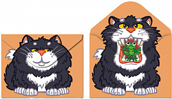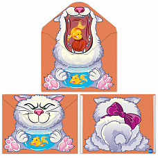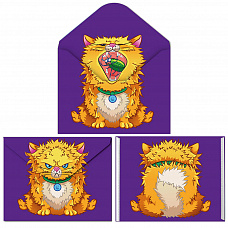 76803 Папка-конверт на кнопке А4, пластик, Кот, 180 мкм, двусторонняя печать