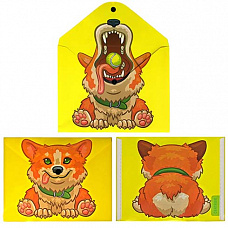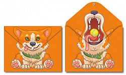 74381 Папка-конверт на кнопке А5, пластик, Корги, 180 мкм, двусторонняя печать