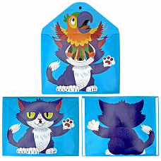 74428 Папка-конверт на кнопке А5, пластик, Кот с попугаем, 180 мкм, двусторонняя печать