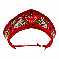 77783 Кокошник-ободок двухсторонний, красный/русские промыслы «семеновская», с регулируемой резинкой, размер – универсальный, материал – полиэстер, пластиковая вставка, полноцветная печать
