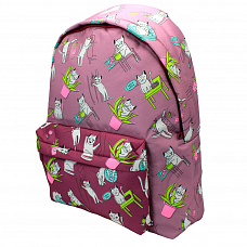 70433 Рюкзак мягкий "Коты-хулиганы бордо", 1 отделение, на молнии с двумя бегунками, большой карман на молнии снаружи, мягкие наплечники, с подкладкой, материал полиэстер, размер 39*30*14 см