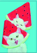 72062 Блокнот Коты с арбузами, формат А6, 11х15 см, 56 листов в клетку на скрепке, обложка с гелевым наполнением, глиттер внутри, морозостойкий