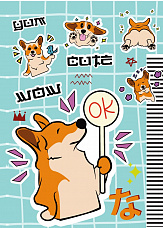 70224 Блокнот "Каваи Корги", формат А6, 11х15 см, 56 листов в клетку на скрепке, обложка с гелевым наполнением, глиттер внутри, морозостойкий