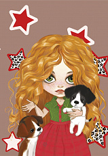 70219 Блокнот "Девочка и щенки", формат А6, 11х15 см, 56 листов в клетку на скрепке, обложка с гелевым наполнением, глиттер внутри, морозостойкий