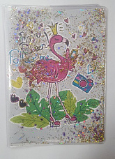90238 Блокнот "Фламинго", формат А6, 11х15 см, 56 листов в клетку на скрепке, обложка с гелевым наполнением, глиттер внутри, морозостойкий
