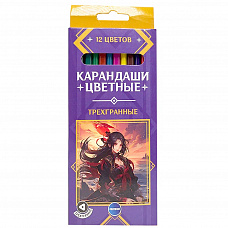 74723 Карандаши цветные пластиковые Аниме 177 мм, 12 цв., трехгранный корпус, в картонной упаковке с европодвесом
