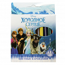 85534 Карандаши цветные шестигранные пластиковые 12 цветов "Холодное сердце", длина 88 мм, в картонной упаковке с европодвесом