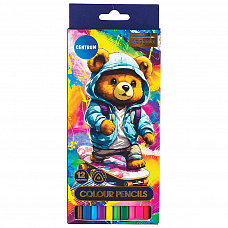 86152 Карандаши цветные пластиковые 12 цветов Мишка, длина 177 мм.