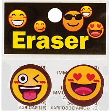 87009 Набор ластиков "Смайлы" 2 шт. (синтетический каучук с принтом) в индивидуальной упаковке ПВХ с подвесом
