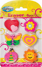86618 Ластик из синт. каучука "Цветы и Сердца",6 штук на блистере,цвета ассорти