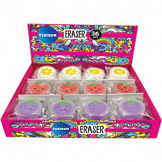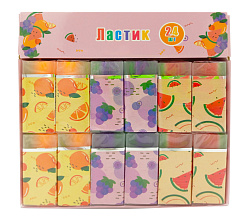 89825 Ластик из синтетического каучука Фрукты, дизайны ассорти (апельсин, виноград, арбуз), в индивидуальной упаковке, в дисплее