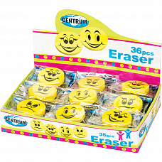 84875 Ластик из синт.. каучука КРУГЛЫЙ "Смайлик",в инд. упаковке, подвес