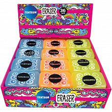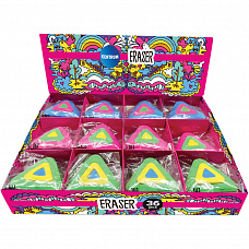 89933 Ластик (синтетический каучук) 36*25*11 мм, цвета в ассортименте, в индивидуальной упаковке, в дисплее