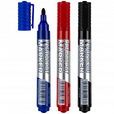 80470 Набор из 3-х перманентных маркеров. Тип стержня круглый. Размер стержня 2-3 мм, цвета: синий, черный, красный.